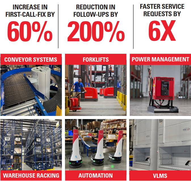 The process is enabled by QR codes with unique identifiers such as model and serial numbers affixed to each piece of equipment. Codes also are linked to back-end data showing the maintenance and repair history of equipment. QR decals can be used on any equipment including forklifts, forklift batteries, conveyor systems, vertical lift modules, mobile robots and other automation equipment.