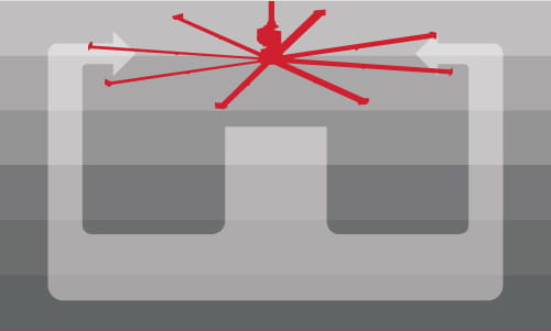 The increased air circulation effectively removes hot, humid air and replaces it with drier air. The result is a silent, non-disruptive and even distribution of 3- to 5-mph breezes over large spaces, with a perceived cooling effect on occupants of up to approximately 10°F (6°C).