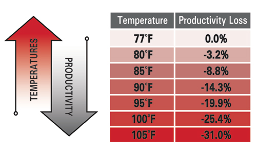 Studies show that productivity begins to decrease by 1-2% at minimum for every degree the temperature in your warehouse rises above 77°F. This can result in a less efficient workforce, and even missed days of work.