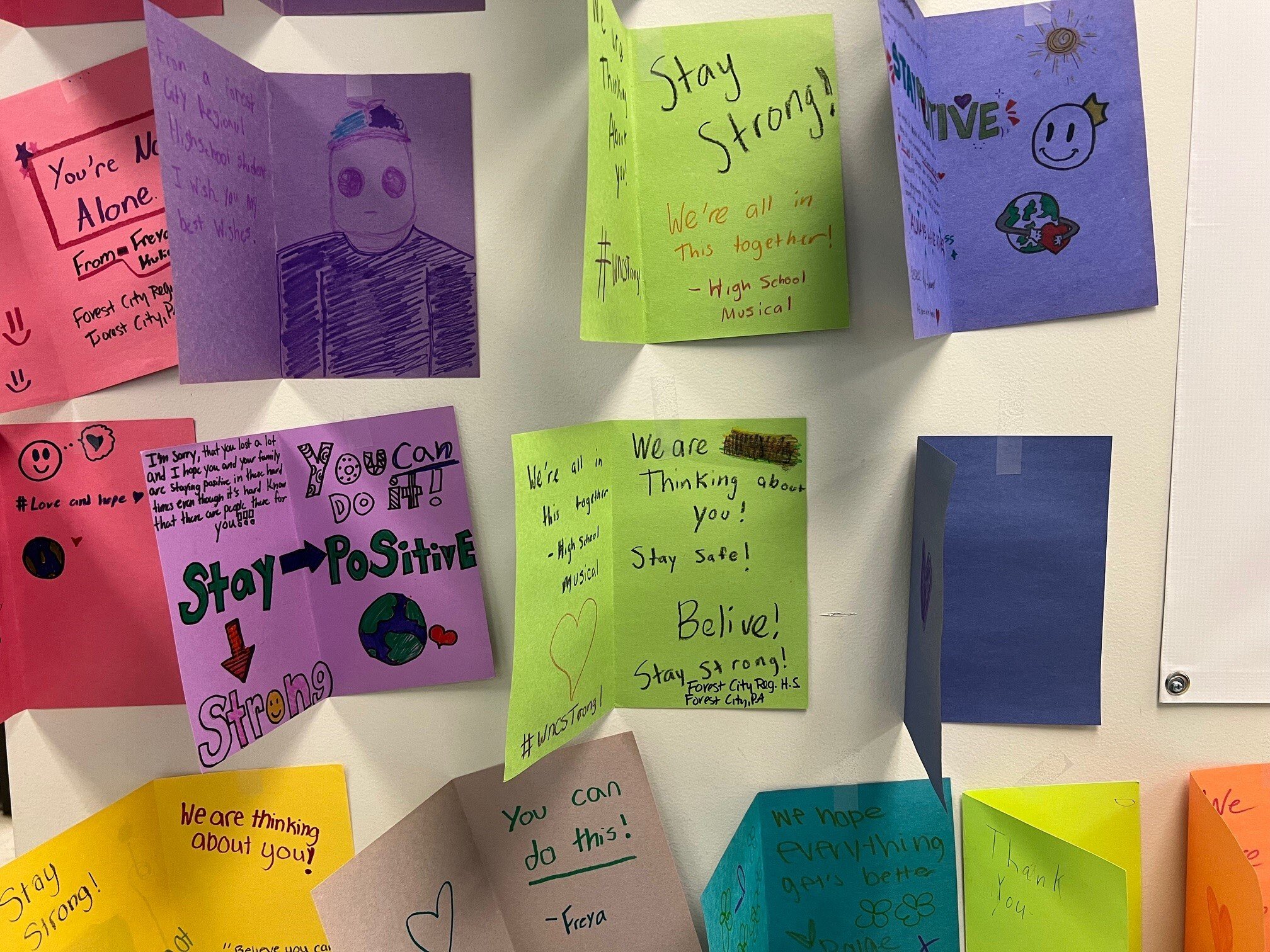 “The storm hit Friday, and there was no cell service over the weekend,” Hipps explained. “By Monday, senior leadership was able to gather and set up a temporary location at the Farmers Market on Brevard Road. On Tuesday morning, we set up a table and a tent, and by 10:30 in the morning, we had these (ready-to-go) meal boxes show up.”